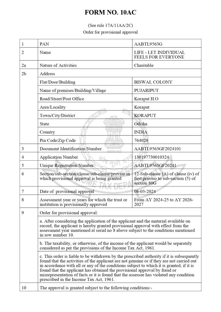 LIFE – LET INDIVIDUAL FEELS FOR EVERYONE